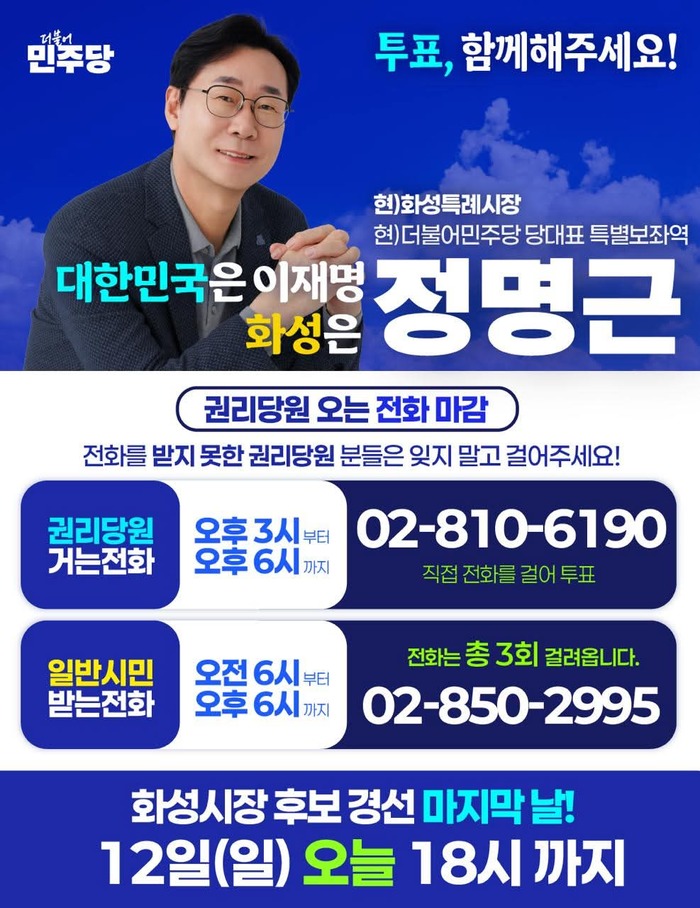 #정명근불법경선 #화성시장불법경선 #민주당불법경선 #당원명부유출 #개인정보유출 #불법선거의혹 #선거사무소논란 #조직선거 #전화홍보논란 #공직선거법 #개인정보보호법 #경선공정성 #정치스캔들 #재심요구 #화성투데이